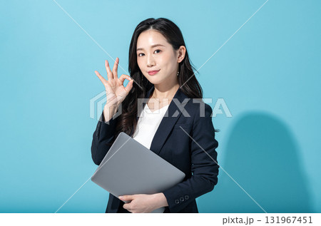 穿著西裝的職業婦女用手指打出「OK」手勢