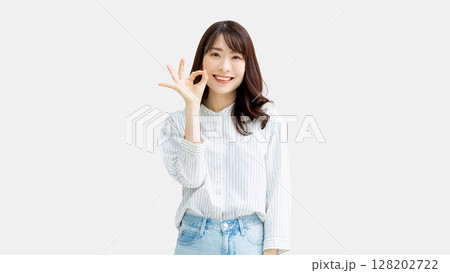 微笑的年輕女子眨眼並用手指做出「OK」手勢