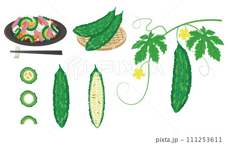 苦瓜 champuru 圖示插圖(線條描顏色)