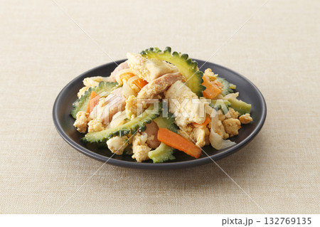 Goya Champuru(沖繩家常炒菜)。特寫鏡頭。