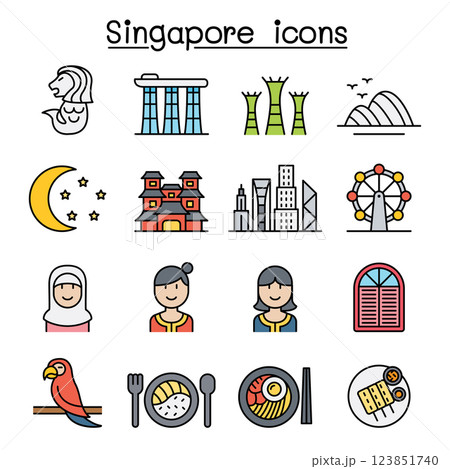 Travel Indonesia flat icons set. Indonesian element icon map and landmarks symbols and objects collection. Vector Illustration