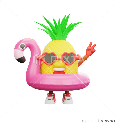 3D render design of a cute pineapple character for summer vacation