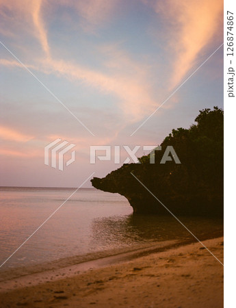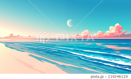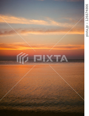 夏季熱帶海灘遮陽傘躺椅與棕櫚樹