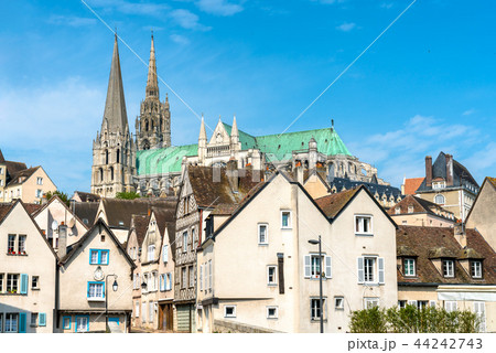 Aerial view of Chartres city with the Cathedral. A UNESCO world heritage site in Eure-et-Loir