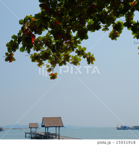 Beautiful aerial view of beach and sea with many tree and white cloud on blue sky in koh samui island