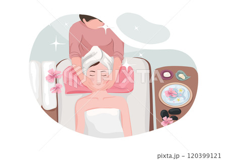 一位女士正在享受身體按摩的插圖