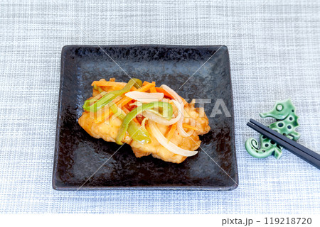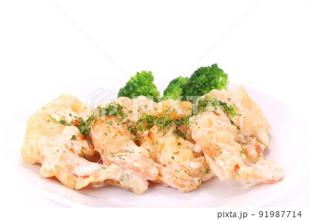 白魚放在盤子裡,配上南蠻醬[白色背景/剪紙]