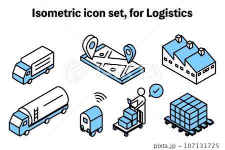 可用於物流和交付系統 DX 的簡單等距圖標集