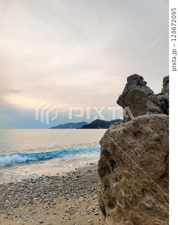 Beautiful landscape from the top of the cliff to the mountains and the sea beach