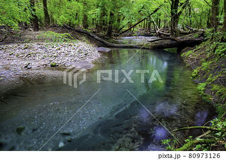 (靜岡縣)新鮮的綠色柴田河泉水富士山