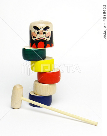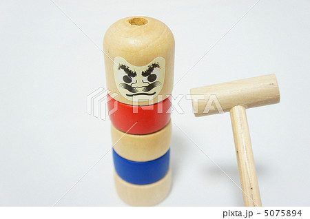 圖:一個玩具因用木槌敲擊而掉落達摩而失敗並倒塌