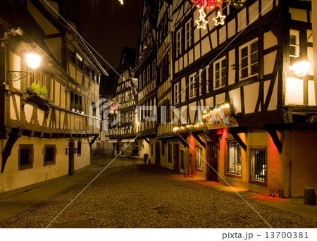 Strasbourg, Alsace. Petite France downtown with Christmas Market decorations, Marche de Noel