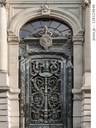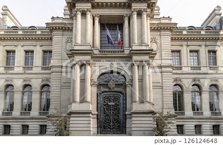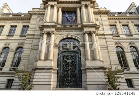 Magnificent entrance facade door of The Paris Chamber of Commerce and Industry building.