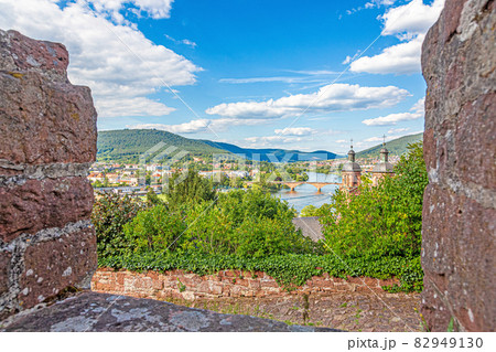 View to the city wall and medieval city of Miltenberg from castle access road during daytime