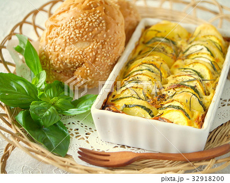 西葫蘆和馬鈴薯果餡餅在燃燒前(垂直位置)