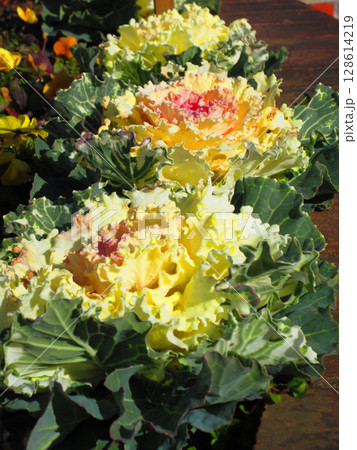 冬季花壇羽衣甘藍花