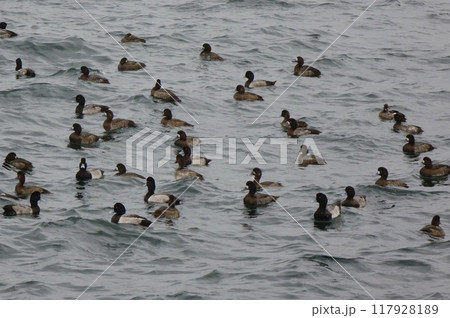 海鳥在波濤洶湧的海灣的波浪中漂浮