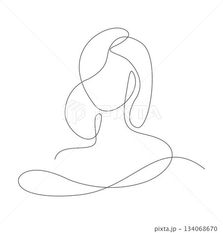 A simple, continuous line illustration of a woman in side profile with a bob hairstyle. Modern minimalist vector art capturing an elegant female silhouette in one single line stroke drawing.