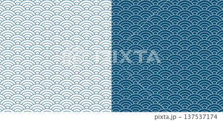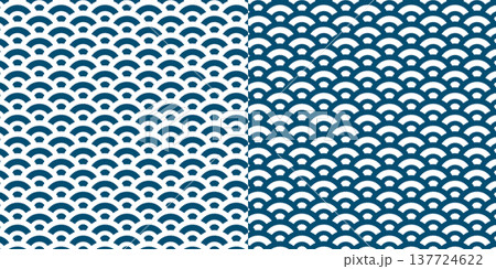 青海波日式圖案背景圖案套裝(兩種類型:填滿型和線條型,傳統日式圖案)