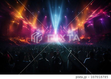 concert crowd summer music festival stage colorful lights.
