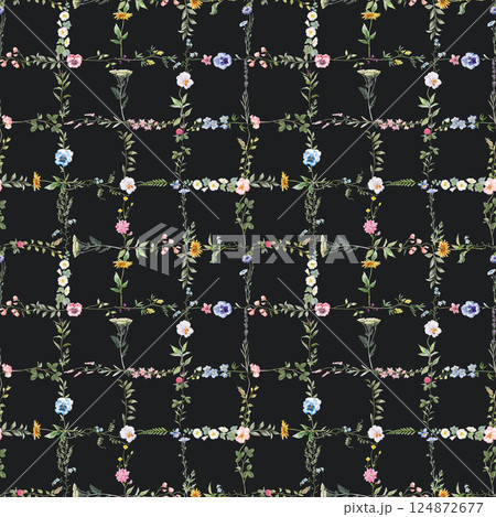 Seamless Diamond Floral Repeat Pattern with Small Ditsy Flowers. Charming Floral Tile Design. Vintage Floral Lattice, Illustration
