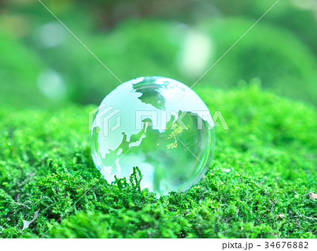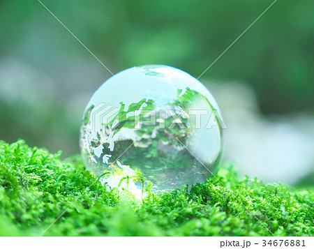 在森林中放置由泥炭蘚製成的地球儀的環境問題和永續性背景