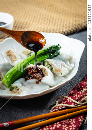 The moment the seasoned sweet soy sauce was poured over the steamed rice rolls with beef