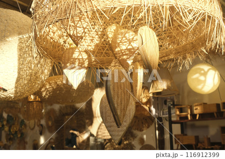 Brown handcraft rattan lamp, decoration and home basket products in Thailand market
