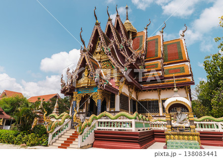 Colorful Thai temple building with ornate roof and decorative details Koh Samui Thailand