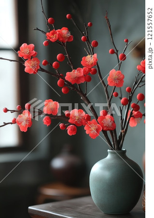 Blooming red plum blossoms adding a touch of elegance to interior design