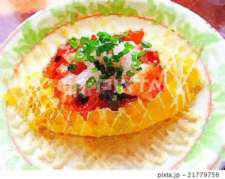 生動的精采手紗水彩畫交叉點圖片白色背景:米飯盤
