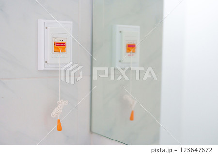 emergency button in toilet of hospital room, calling nurse in emergency case. Professional Medical system and Safety Alert