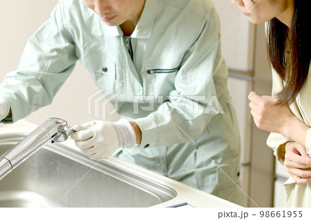 公寓裝修、水槽、圖片素材、管道、廚房、建築、施工