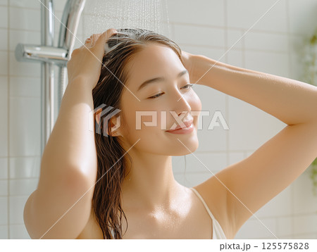 一名成年女性和一名男性理髮師在美容院的洗頭台上洗頭