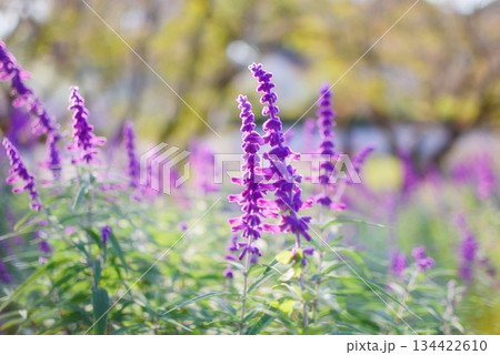 公園花壇裡盛開的薰衣草