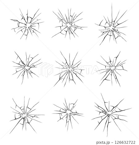 Glass crack broken texture window. Ice glass cracked effect background bullet mirror transparent isolated illustration