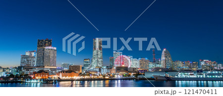 日本橫濱城市景觀 — 染成藍色的港口未來、富士山、櫻木町站方向等 — 12 月 8 日