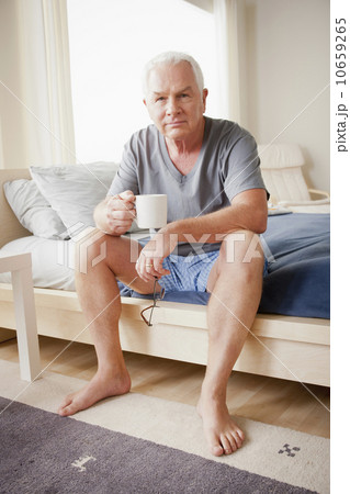 Senior man holding mug
