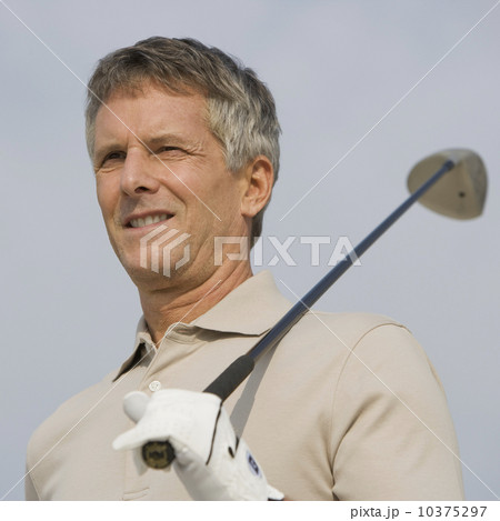 Man holding golf club on shoulder