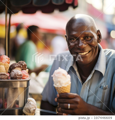 ice cream street vendor smiling at camera