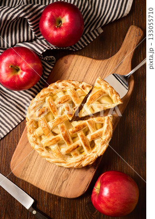 Delicious french vegetable pie with mozzarella di bufala cheese. French dish.