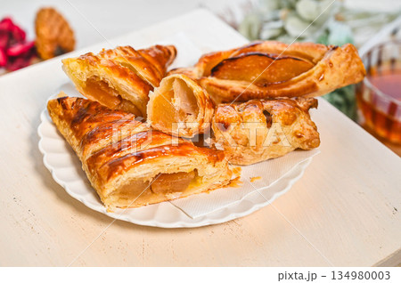 Homemade baking. Cherry tomato snack pie. Studio Photo.