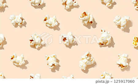 A seamless and minimalistic pattern featuring individual pieces of popcorn scattered evenly across a light yellow background, seamless popcorn background, scattered popcorn graphic