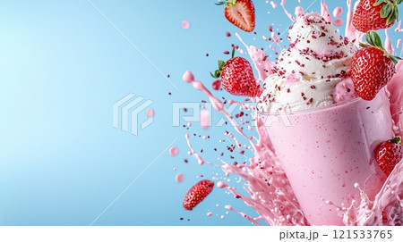 Delicious Strawberry Milkshake with Splash and Cream