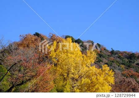 黃色的銀杏葉與城山的紅葉相映成趣 [相模原市津久井 12月]