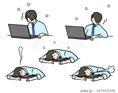 一個疲憊的商人在電腦前打瞌睡的插圖集
