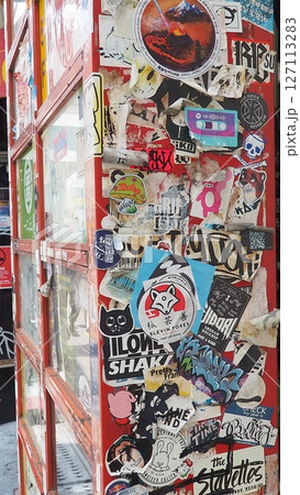 八個男性剪影_亞洲購物街的模糊圖像背景_寬