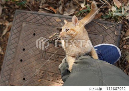 一隻可愛的小貓,瘋狂玩耍,爬進褲子裡