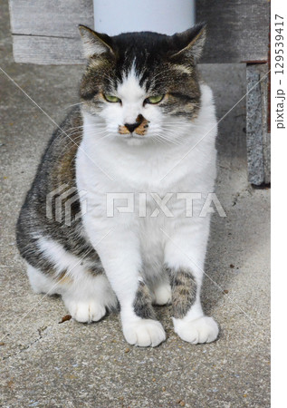 一隻可愛的三色貓,對大蜈蚣感到好奇