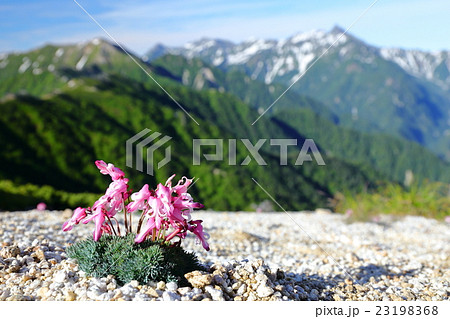 【高山植物】高山植物女王-荷包牡丹,盛開在富士山的礫石地帶。乘鞍[長野縣]